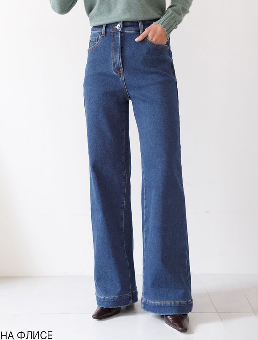 Джинсы-трубы из эластичного денима на флисе