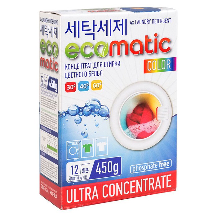 Концентрированный стиральный порошок для цветного белья ECOMATIC COLOR. Концентрированное синтетическое моющее средство порошкообразное на основе минералов