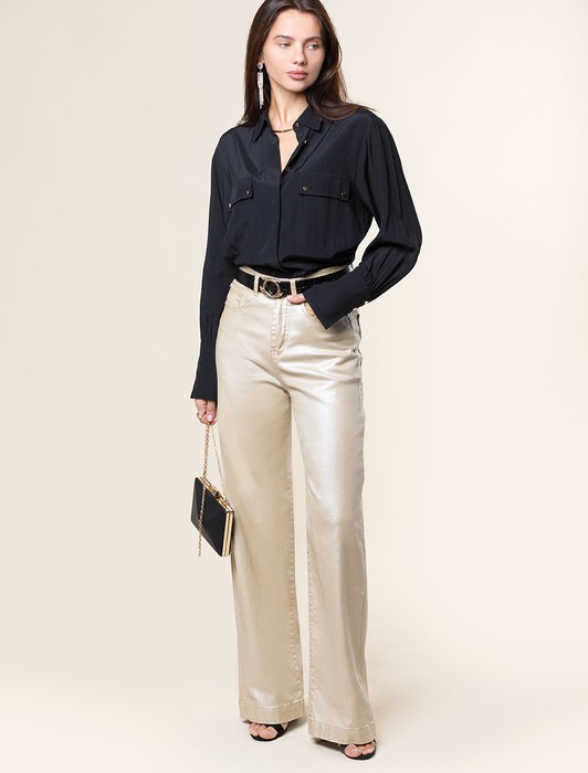 Состав: 97%Хлопок 3%ПУ Параметры модели на первом фото: Рост 170, бюст 83, талия 64, бедра 88Джинсы выполнены из эластичного денима с легким металлизированным покрытием. Супер-трендовая модель свободного кроя с высокой посадкой на талии. Цвет бежевой фольги с мягким жемчужным сиянием подходит любому цветотипу и сочетается со множеством других оттенков верхов. Плотная ткань хорошо держит форму не сковывая движений.