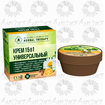 Крем Универсальный 15 в 1 на основе 16 лечебных трав и активного комплекса для восстановления кожи, обеспечивает полноценный уход и защиту кожи всей семьи. Благодаря регенерирующему эффекту, ускоряет восстановительные и заживляющие процессы кожных покровов. Улучшает состояние чувствительной и сухой кожи, успокаивает, уменьшает раздражение. Крем можно использовать для защиты, увлажнения, питания, смягчения, омоложения и для ухода за поврежденной и чувствительной кожей.