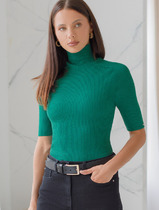 09.04 Vilatte Водолазка тонкой вязки в рубчик из хлопка с нейлоном D34.198 зеле