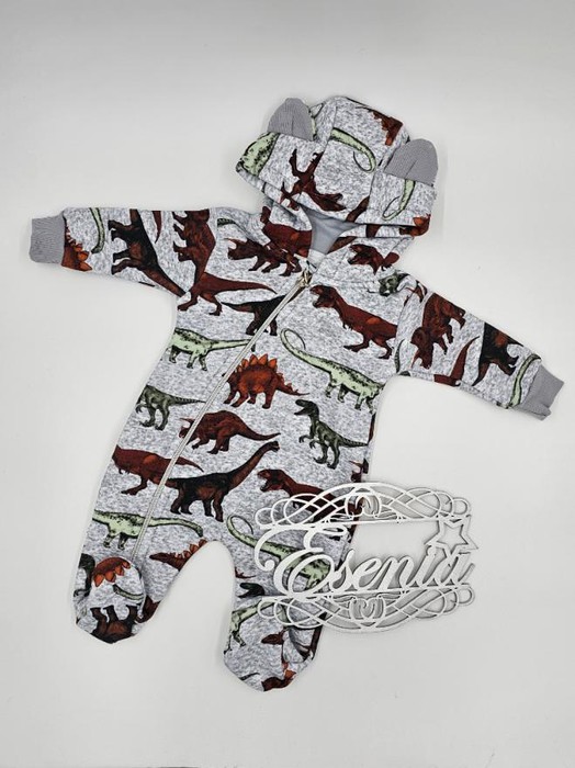 ESENIA Комбинезон с капюшоном для малышей с начесом Серый динозавры