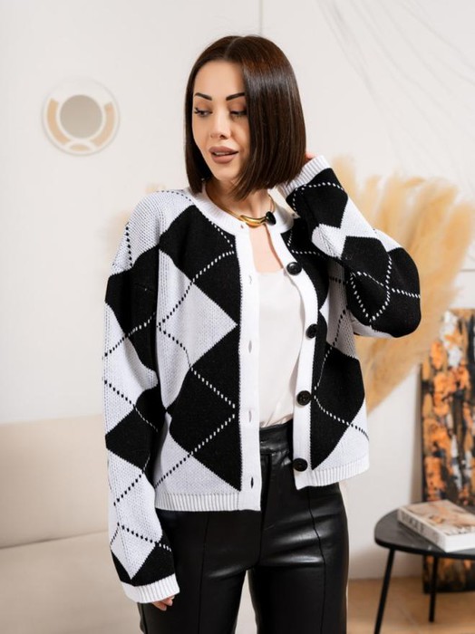 ESENIA Жакет женский Ромб - Бело-чёрный