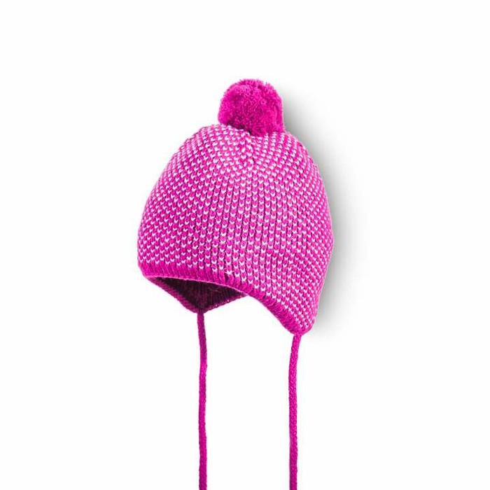 Шапка детская с цельновывязанными наушниками, на подкладке. со стянутым верхом и прессовым переплетением со сменой цвета, помпоном и шнуром.