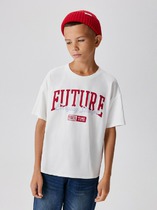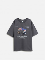 Футболка для мальчика из трикотажного полотна "кулирка-варенка", с короткими рукавами покроя "реглан", горловиной овальной формы, обработанной втачной планкой, и принтом в центре детали переда, выполненным в технике шелкографии. По швам реглана и горловине настрочены отделочные строчки.