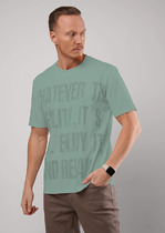 Футболка мужская оверсайз из трикотажного полотна: хлопкового с добавлением лайкры. Модель с принтом на переде, спущенной линией плеч, рукавами длиной до локтя.