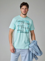 Мужская футболка из кулирки. Короткие рукава, круглая горловина, украшена печатью, прямой силуэт.