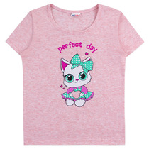 Футболка из меланжевого трикотажа, декорированная зеркальным принтом в виде зебры с бахромой по бокам. Свободный крой, круглый вырез горловины, декоративный вырез на спинке снизу.На ребенке представлен размер 110:- Ширина изделия по линии груди 33 см- Ширина по низу изделия 35 см- Длина изделия 47,5 смРазница между размерами составляет 1,5 см.