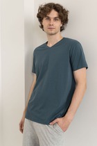 Классическая мужская футболка с V-образным вырезом и классическим рукавом. Универсальная модель, которая подойдет под классические джинсы, брюки и шорты. Сделана из турецкого полотна качества Penye