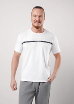 Классическая футболка свободного прилегания с коротким рукавом и круглым вырезом горловины из рибаны. Футболка дополнит образ к шортам и брюкам данной коллекции, а так же любым поясным