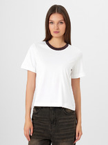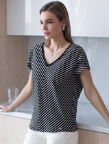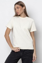 Футболка женская из гладкокрашеного трикотажного полотна «кулирка с лайкрой», свободного покроя, с втачными короткими рукавами и вышивкой пайетками на полочке. Горловина овальной формы обработана втачной планкой с отделочной строчкой по шву притачивания.