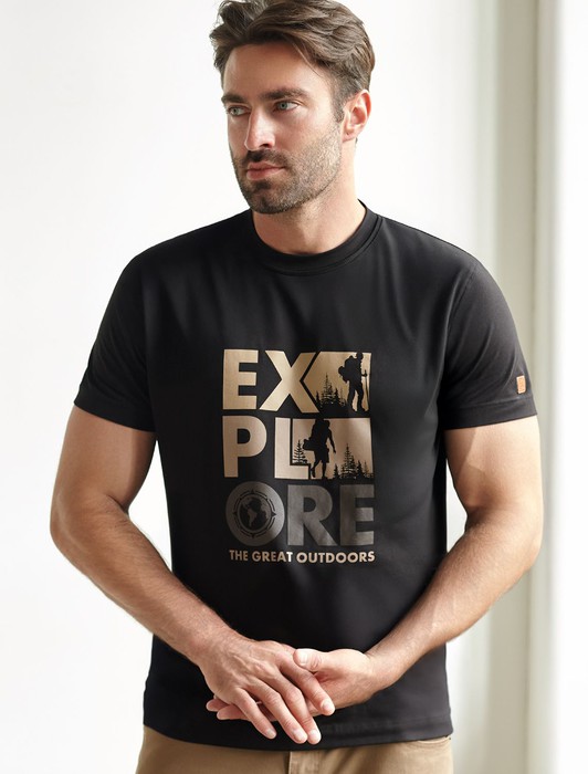 Состав: 92%Хлопок 8%ПУ Плотность: 170 Г/м2 Параметры модели на первом фото: Рост 190, бюст 108, талия 87, бедра 104Перевод принта: Explore the great outdoors - исследуй мир. Футболка выполнена из премиального хлопка с эластаном. Авторский принт нанесен фактурными красками с устойчивым покрытием. Изделие комфортно сидит по фигуре, не сковывая движений. За счет среднего объема, хорошо подойдет как первый слой под пиджак, кардиган или бомбер. На рукаве нашивка из эко-кожи с логотипом бренда.