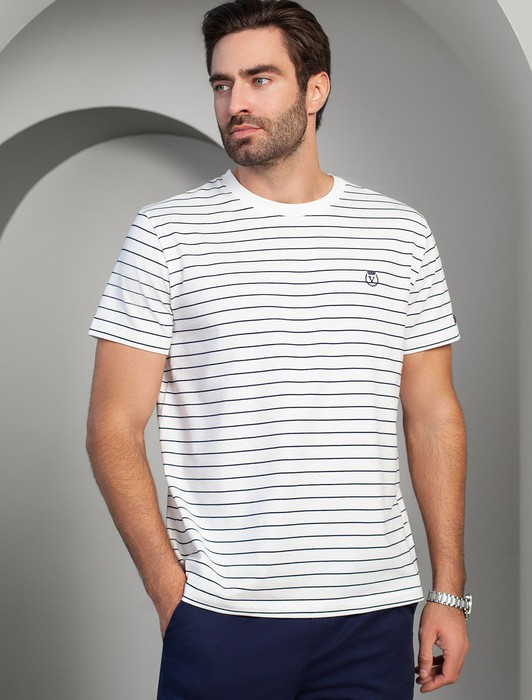 Состав: 92%Хлопок 8%ПУ Плотность: 170 Г/м2Футболка выполнена из премиального хлопка. Изделие украсили вышитым логотипом бренда. Наличие эластана в составе изделия способствует формоустойчивости и меньшей сминаемости. Изделие сохранит свой безупречный внешний вид в течении долгого времени. В такой модели будет комфортно и на прогулке, и в офисе с джемпером.