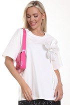 Футболка их хлопка белого цвета с декором в виде броши-цветка из органзы