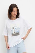 Особенности: Свободный силуэт; Цельнокройный рукав; Спинка со средним швом; Углублённая горловина; Принт термотрансфер. Рекомендации по уходу: Стирать при температуре воды 30°С; Стирать в щадящем режиме; Гладить при температуре до 110°С; Отбеливать изделия запрещено; Химчистка изделия запрещена; Не сушить в сушильной машине. Таблица размеров Размер 48 50 52 54 56 58 Обхват груди, см 94-98 98-102 102-106 106-110 110-114 114-118 Обхват талии, см 74-78 78-82 82-86 86-90 90-94 94-98 Обхват бёдер, см 102-106 106-110 110-114 114-118 118-122 122-126