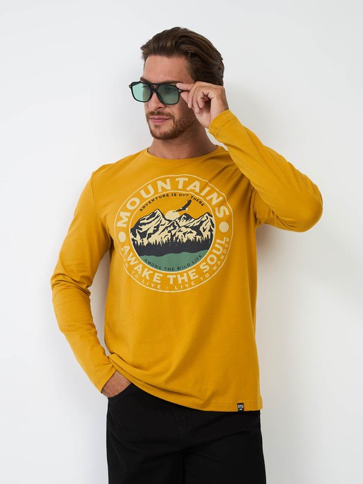 Мужская футболка F5, Regular fit (полуприлегающий силуэт), круглый вырез горловины, длинный рукав. Выполнена из классического трикотажного полотна.