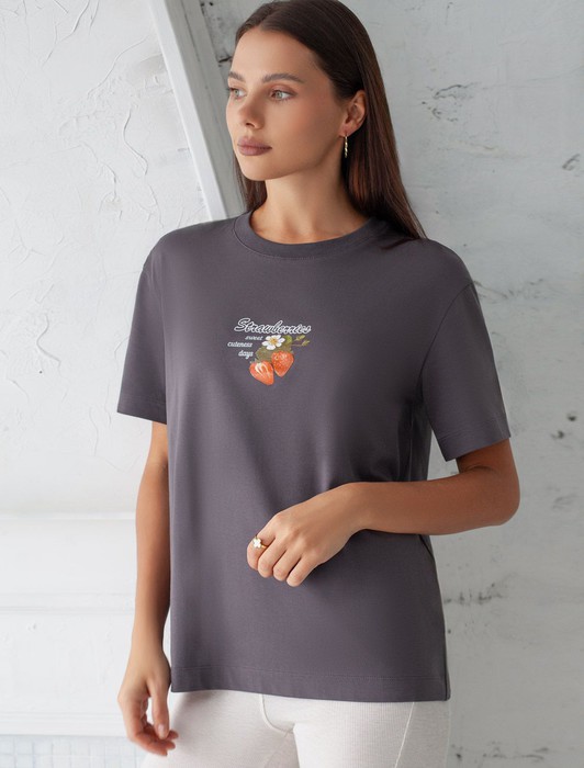 Состав: 92%Хлопок 8%ПУ Плотность: 170 Г/м2 Размер товара на первом фото: 42Футболка темно-серого цвета изготовлена из премиального хлопка с эластаном, она обеспечивает невероятное ощущение уюта и легкости. Натуральный материал сохраняет форму и цвет после множества стирок, обеспечивая долговечность изделия, а его высокая воздухопроницаемость создает ощущение свежести даже в течение долгого дня.