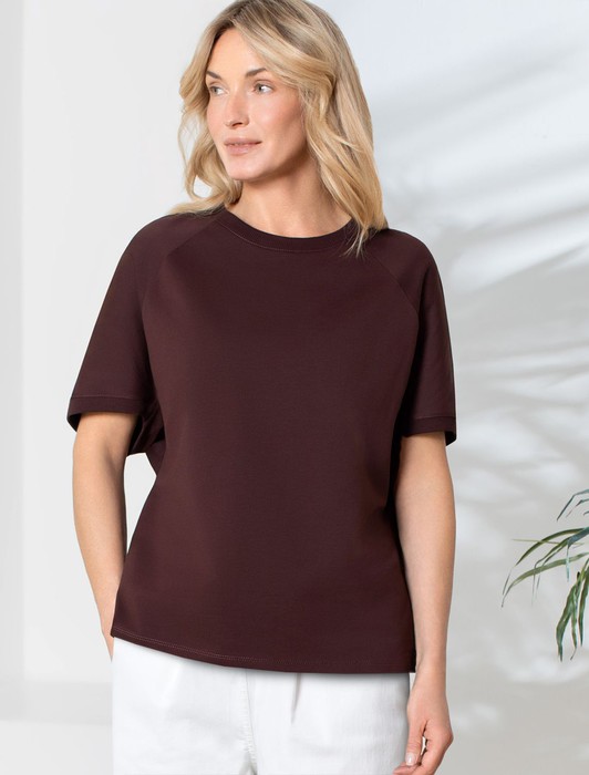 Состав: 95%Хлопок 5%ПУ Плотность: 240 Г/м2Футболка коричневого цвета свободного кроя выполнена из премиального футера двухнитки с эластаном плотностью 240 Г/м2. . Натуральный материал отличается мягкостью и приятной текстурой, позволяя коже дышать и обеспечивая максимальное удобство при носке. Наличие эластана в составе изделия гарантирует абсолютный комфорт и формоустойчивость. Круглый ворот, рукава регланы средней длины и спущенная линия плеча придают футболке стильный и современный вид, делают образ расслабленным и непринужденным, такой вариант отлично сядет на большие размеры. Плотная футболка идеально подходит для повседневной носки и незаменима для тех, кто ценит удобство и свободу движений без компромиссов по стилю.