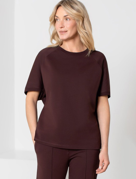 Состав: 95%Хлопок 5%ПУ Плотность: 240 Г/м2Футболка коричневого цвета свободного кроя выполнена из премиального футера двухнитки с эластаном плотностью 240 Г/м2. . Натуральный материал отличается мягкостью и приятной текстурой, позволяя коже дышать и обеспечивая максимальное удобство при носке. Наличие эластана в составе изделия гарантирует абсолютный комфорт и формоустойчивость. Круглый ворот, рукава регланы средней длины и спущенная линия плеча придают футболке стильный и современный вид, делают образ расслабленным и непринужденным, такой вариант отлично сядет на большие размеры. Плотная футболка идеально подходит для повседневной носки и незаменима для тех, кто ценит удобство и свободу движений без компромиссов по стилю.