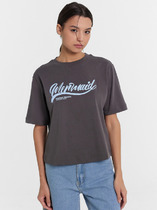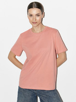 Футболка молодежная из гладкокрашенного полотна «кулирка с лайкрой», свободного покроя, со спущенной линией плеча, втачными рукавами длиной до локтя, горловиной овальной формы, обработанной втачной планкой. Изделие дополнено декоративной нашивкой, в боковых швах выполнены разрезы.