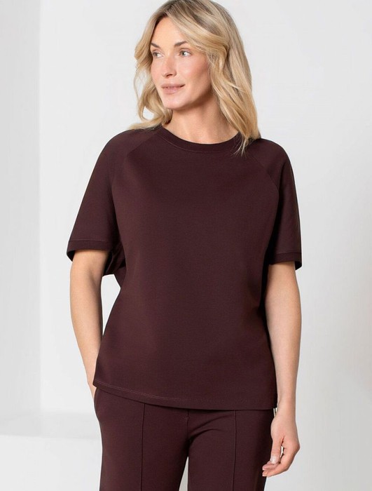 Футболка с рукавами регланами выполнена из эластичного футера двухнитки. Свободная модель со спущенной линией плеча легко поможет составить образы в расслабленном стиле. Сочетается в костюме с брюками D44.135, D44.136 и юбкой D46.034. Наличие эластана в составе изделия гарантирует абсолютный комфорт и формоустойчивость.
