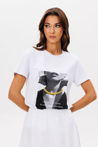 Повседневная футболка универсальна: она сочетается с джинсами, юбками или строгими брюками — легко создать как деловой образ для офиса, так и наряд для вечеринки или ужина вне дома. Матовое покрытие создает благородный блеск без лишней яркости, благодаря чему футболка смотрится свеж