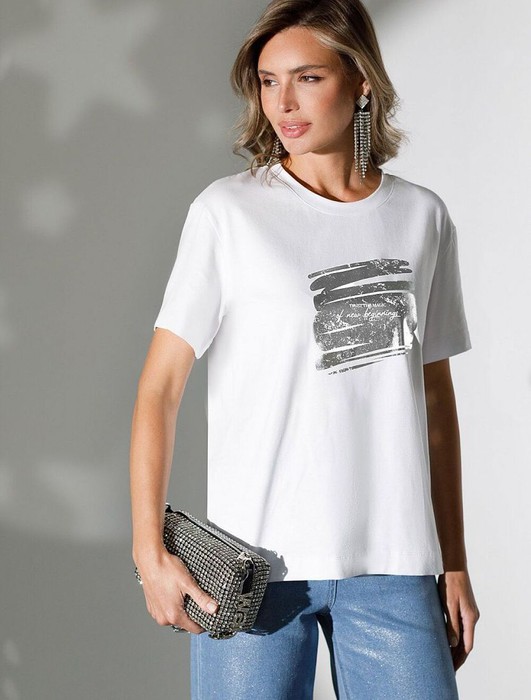 Эта эффектная футболка станет отличным выбором на праздник, подчеркивая образ сияющей и уверенной в себе девушки или женщины. Если вы ище