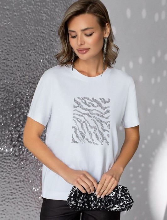 Эта эффектная футболка станет отличным выбором на праздник, подчеркивая образ сияющей и уверенной в себе девушки или женщины. Если вы ище
