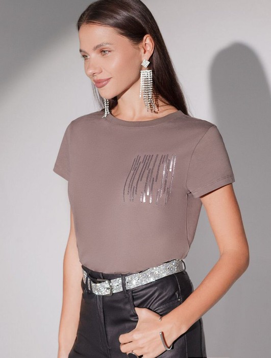 Эта нарядная футболка подходит для создания образа на каждый день и идеально подойдет на выход. Модель не мнется, что делает ее практичным вариантом для активных женщин, которые ценят стиль и удобство.