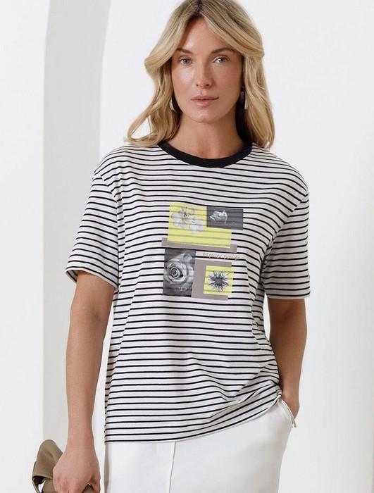 Футболка Vilatte D49.145 белый-черный_flower_power