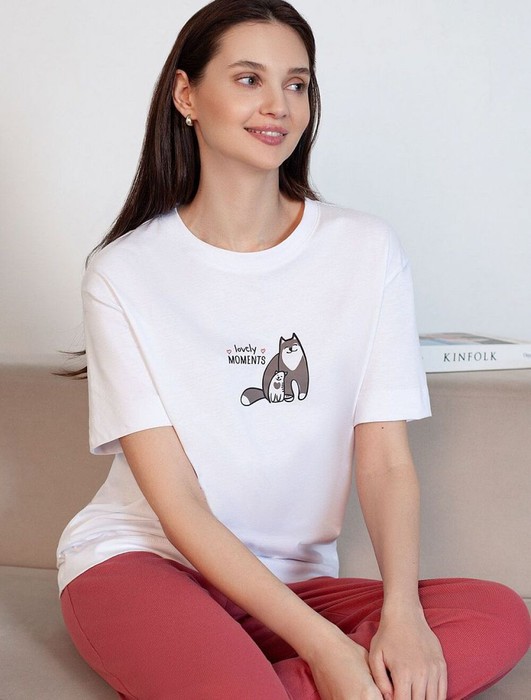 Футболка Vilatte D49.158 белый_коты