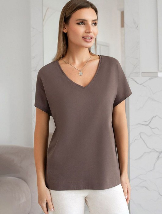 Свободная футболка черного цвета с V-вырезом и цельнокроеным рукавом из натурального 100% хлопка создает красивый и легкий образ для дома и отдыха. Дышащая ткань бережно заботится о коже, в то время как декольте с V-вырезом утонченно подчеркивает линию шеи, а свободный крой скрывает возможные недостатки фигуры. Такая футболка отлично подойдет для тех, кто ценит комфорт и стиль одновременно. Принт в виде ярких цветов добавляет повседневной футболке оригинальности и актуальности для любой домашней обстановки. Благодаря натуральной хлопковой ткани, она идеально подходит для ежедневного использования, обеспечивая чувство легкости и свободы движений. Легкая структура материала поддерживает оптимальный микроклимат, что важно при длительном использовании. Эта футболка женственно смотрится и дарит ощущение уюта, делая ее необходимым элементом домашнего гардероба.
