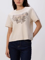 Футболка женская из гладкокрашенного трикотажного полотна «кулирка», свободного силуэта, с боковыми швами, переходящими в рельефы, в правом соединительном шве выполнен разрез. Горловина овальной формы обработана втачной планкой и дополнена декоративным элементом.