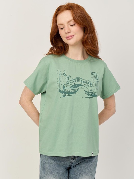 Женская футболка F5, Oversize fit (свободный силуэт), круглый вырез горловины, короткий цельнокроеный рукав. Выполнена из классического трикотажного полотна.