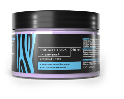 Питательный гель алоэ для лица и тела с АНА-кислотами и экстрактом василька – идеальное средство для тех, кто стремится обеспечить свою кожу необходимыми питательными веществами и оздоровить её.