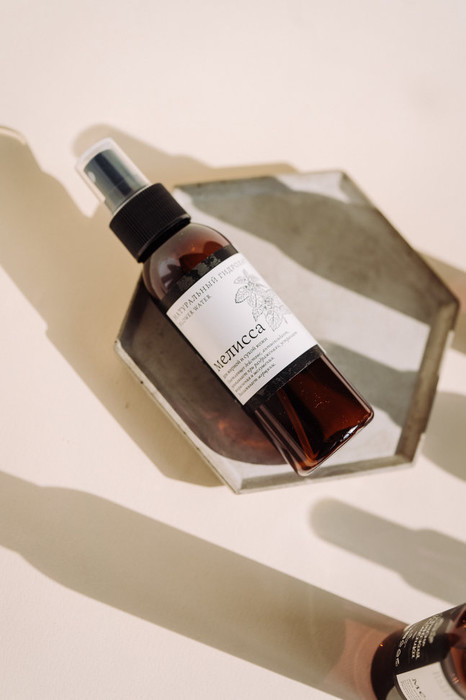 "Гидролат мелиссы (цветочная вода) — продукт паровой дистилляции (выпаривания) листьев мелиссы. Собранный конденсат пара — это целебная жидкость, которая содержит водорастворимые полезные компоненты растения.