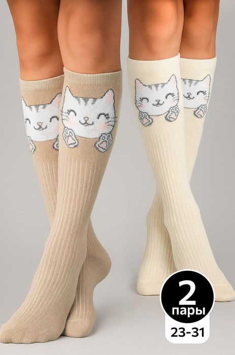 Гольфы с рисунком Котик для девочки — нежный акцент для стильного гардероба. В комплекте 2 пары пастельных цветов — универсальное сочетание для повседневных и нарядных образов.