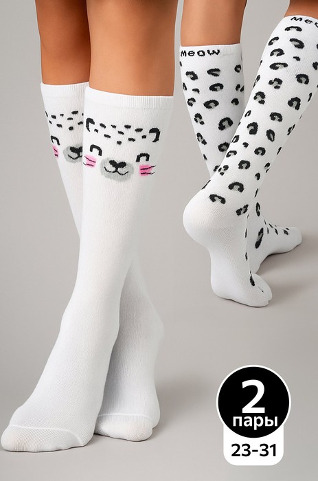 Гольфы с рисунком Леопард для девочки — нежный акцент для стильного гардероба. В комплекте 2 пары белого цвета — универсальное сочетание для повседневных и нарядных образов.