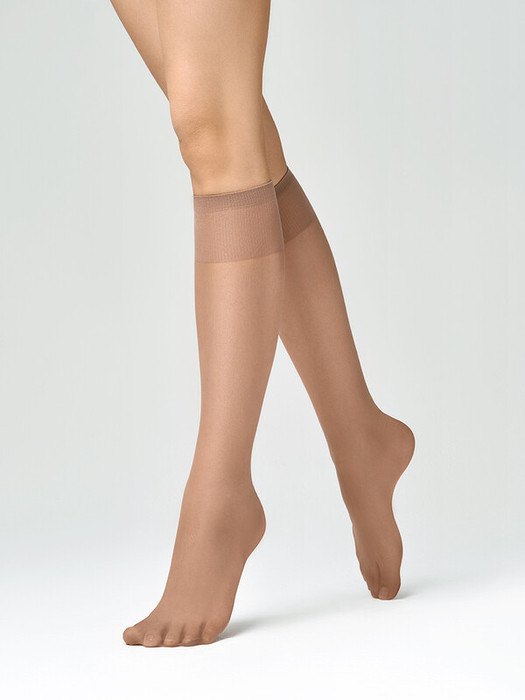 Женские тонкие эластичные гольфы 20 den. Эластан в составе обеспечивает идеальное облегание, широкая удобная резинка «ТОП комфорт» приятно ощущается на ноге, а невидимый усиленный мысок создает дополнительную прочность и отлично сочетается даже с легкой, открытой обувью.