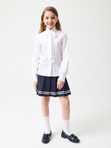 Трикотажная школьная блузка для девочки приталенного силуэта,