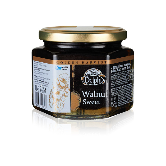 Описание Грецкий орех в сиропе, Delphi Масса нетто: 453г Состав: Грецкий орех 55%, сахар, сахарный сироп, лимонная кислота, сорбат калия 0,1%.   Пищевая/ энергетическая ценность на 100г: 301 Ккал / 1260 кДж, Углеводы – 75,1г, из них сахар 75г, Белки – 0,5г, Жиры – 0г, Клетчатка – 0,1г, соль – 0,01г, Натрий – 4мг. Изготовитель: Halvatzis Makedoniki SA 5th km Skydra-Veria, 58500, Греция, Закрытую упаковку хранить при температуре от 8 °С до +25 °С и относительной влажности воздуха не более 75%. Открытую упаковку хранить в холодильнике при температуре от +4°С до +8°С. Изготовлено в соответствии со спецификацией. Срок годности 36 месяцев. Произведено: см. на упаковке Годен до: см. на упаковке