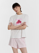 Халат женский полуприлегающего силуэта. Рукав втачной 3/4. Вырез У-образный. В боковых швах внутренние карманы. На полочках и рукавах принт