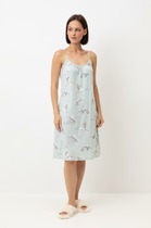 Халат женский из трикотажного полотна «кулирка» с набивным рисунком полуприлегающего силуэта, с горловиной овальной формы, окантованной основным материалом, короткими втачными рукавами с притачными манжетами. В боковых швах, смещенных в сторону полочки, обработаны карманы.