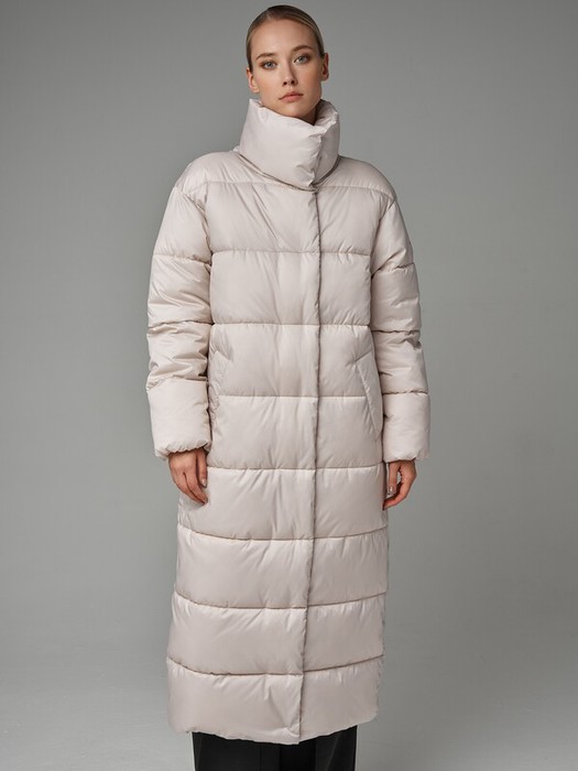 Пуховик прямого силуэта на молнии и потайных кнопках.