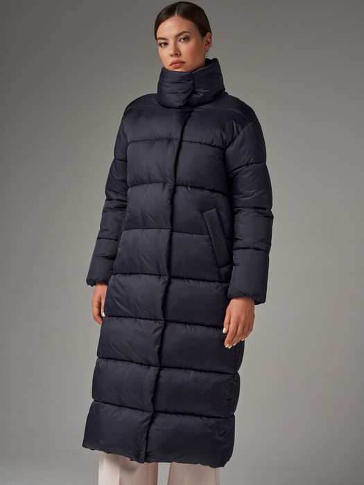 Пуховик прямого силуэта на молнии и потайных кнопках.