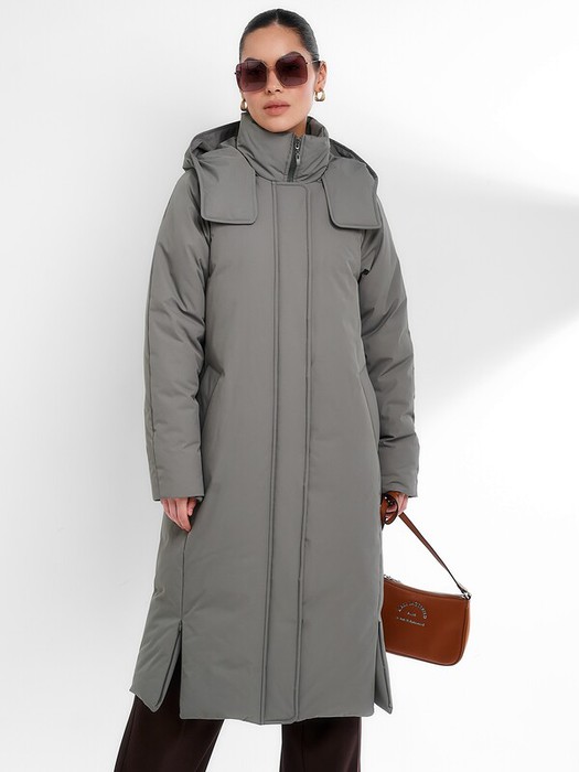 Детали: застежка на потайные кнопки и на молнию, внизу изделия рельеф с потайной молнией.