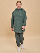 Толстовка для мальчика из трикотажного полотна, прямого силуэта, с длинными втачными рукавами, с объемным воротником-хомут , с поясом. Рукав на манжете. На переде карман-кенгуру и нанесен принт.