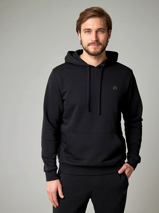 Классическая толстовка "Худи" выполнена из хлопкового полотна с добавлением полиэстера. Мягкая и приятная на ощупь, обладает хорошей гигроскопичностью,  позволяет коже дышать. Модель с капюшоном и длинными рукавами не сковывает движений,  обеспечивая комфорт. Объем капюшона регулируется при помощи шнура. Манжеты рукавов и низ толстовки оснащены эластичными резинками. Спереди толстовка дополнена карманом "кенгуру".