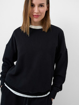 Толстовка женская оверсайз с втачным рукавом. Линия плеча спущенная. Горловина с капюшоном. По переду карман кенгуру. Рукав длинный по низу с притачной манжетой. По низу ширина толстовки регулируется фиксаторами с резинкой.