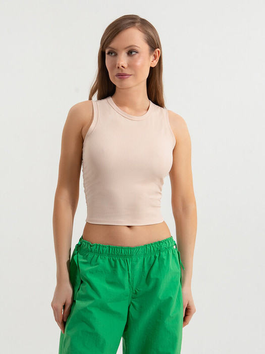 Благодаря плотной резинке снизу и по бокам майка будет отлично сидеть по фигуре, красиво подчеркивая силуэт.